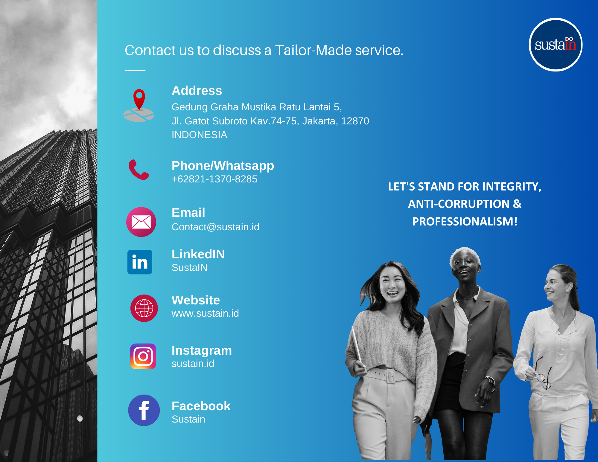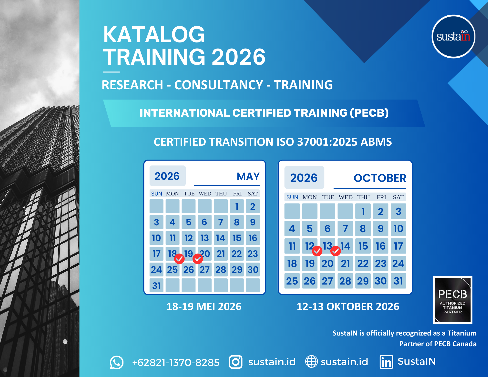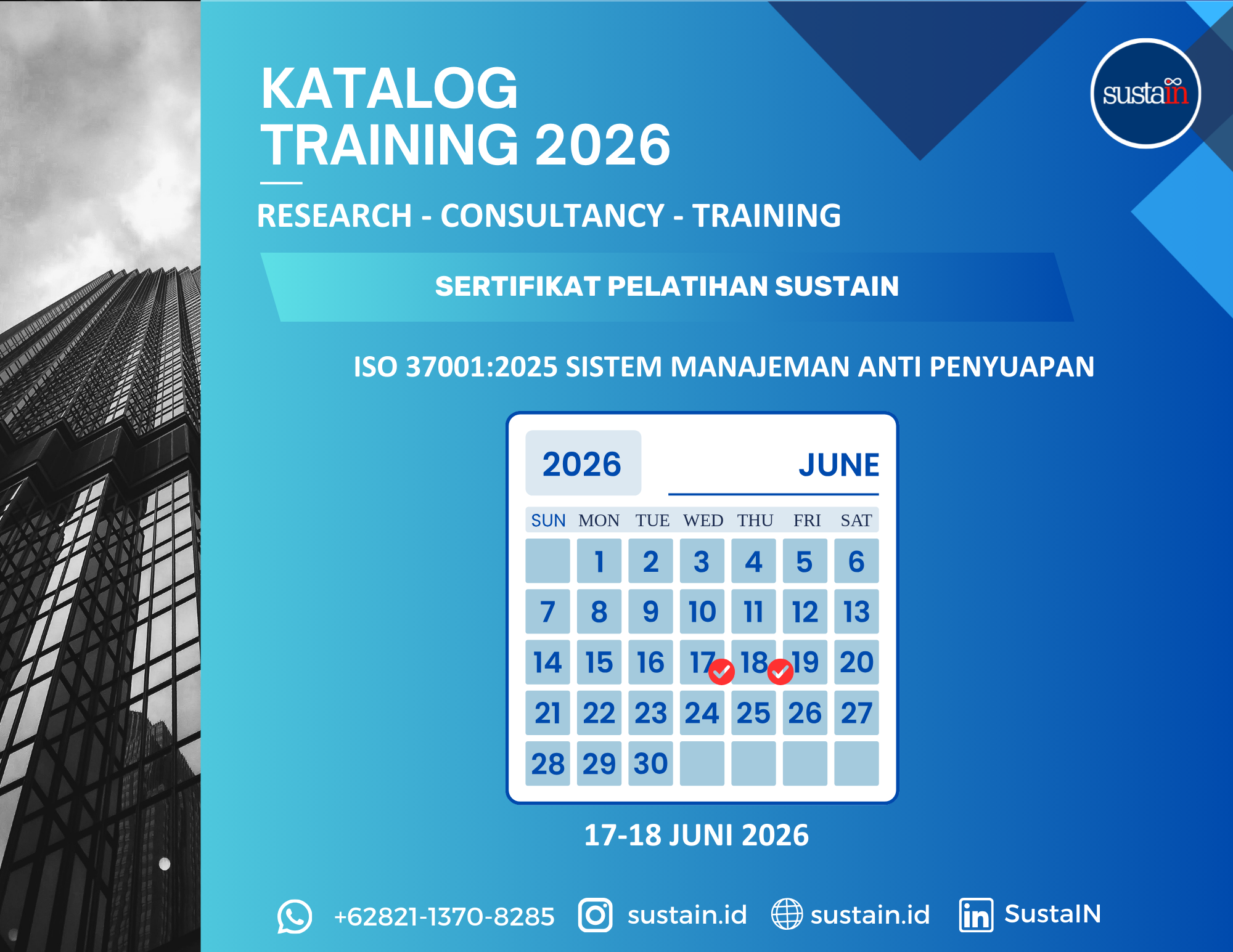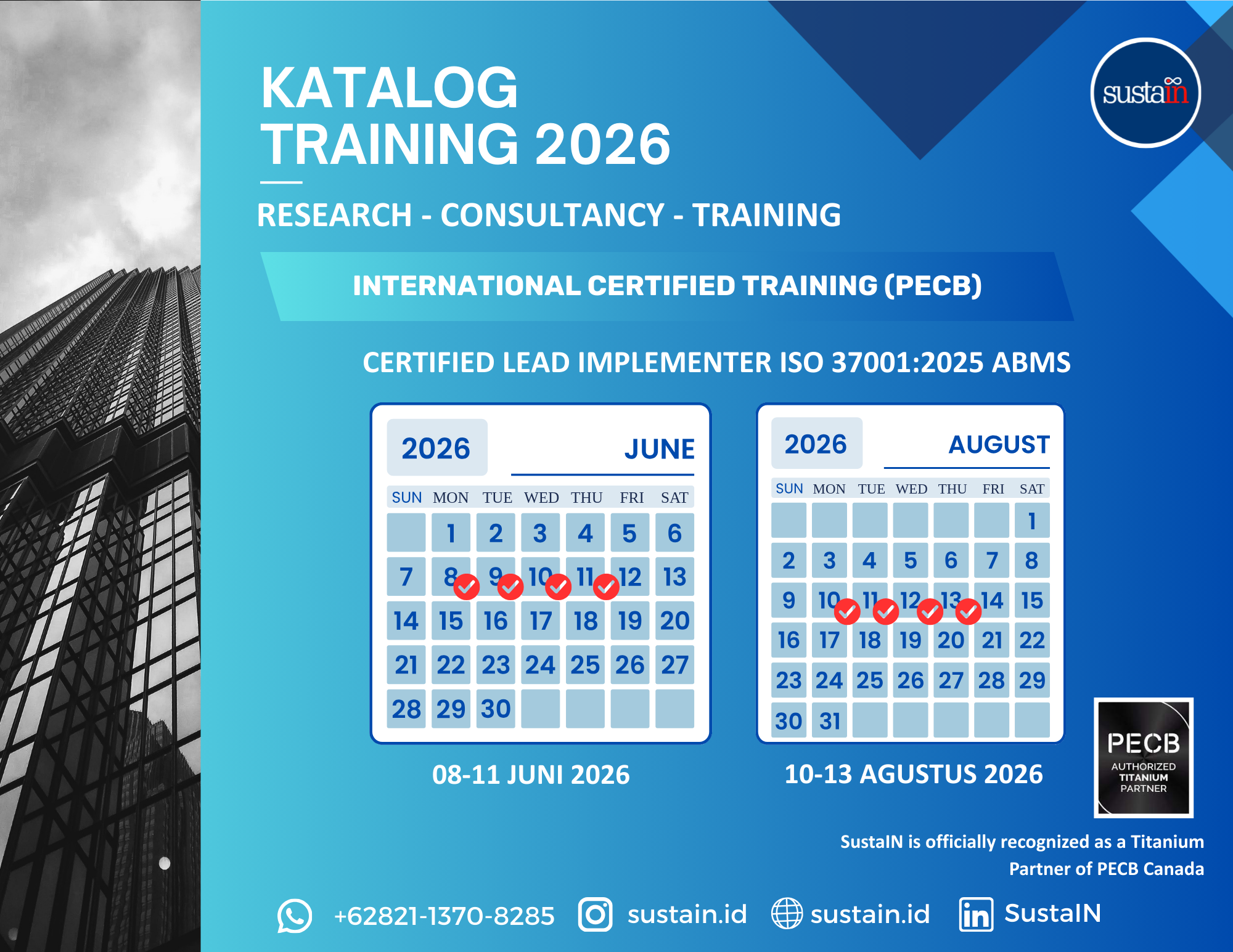 SustaIN adalah perusahaan konsultan yang fokus pada riset, konsultasi, dan training. Dalam kegiatan training, SustaIN memiliki lebih dari 40 program pelatihan yang diantaranya adalah mengenai Good Governance, Corporate Management, Legal/Compliance, Communication dan Individual/Organisational Capacity Development seperti Training for Trainer (TFT), Training untuk Fasilitator. Untuk informasi lengkap mengenai daftar pelatihan yang SustaIN selenggarakan, silakan unduh jadwal pelatihan kami berikut. Untuk appointment 30 – 60 menit Training Need Analysis (TNA) silakan beremail ke contact@sustain.id atau hubungi kami melalui Whatsapp +62 821-1370-8285.